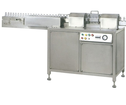 This Semi automatic bottles washing machine is designed to cleanse bottles using a series of jets in inverted position. The bottles are loaded individually on the conveyor and proceeded to vacuum chamber where a highly pressurised air jets are blown into the bottle to remove any dirt or dust. Our skilled engineers design these machines based on the international design and safety standards. We also offer customisation to fit to the client's requirements.