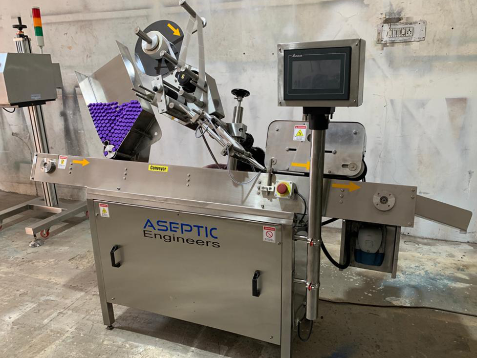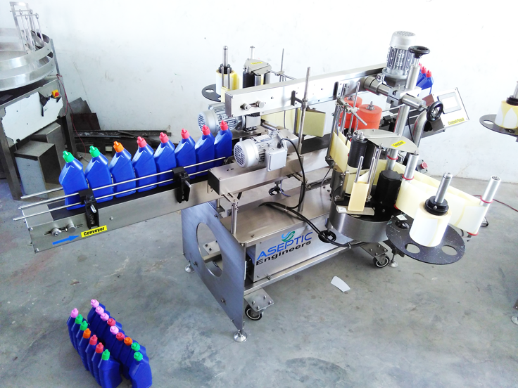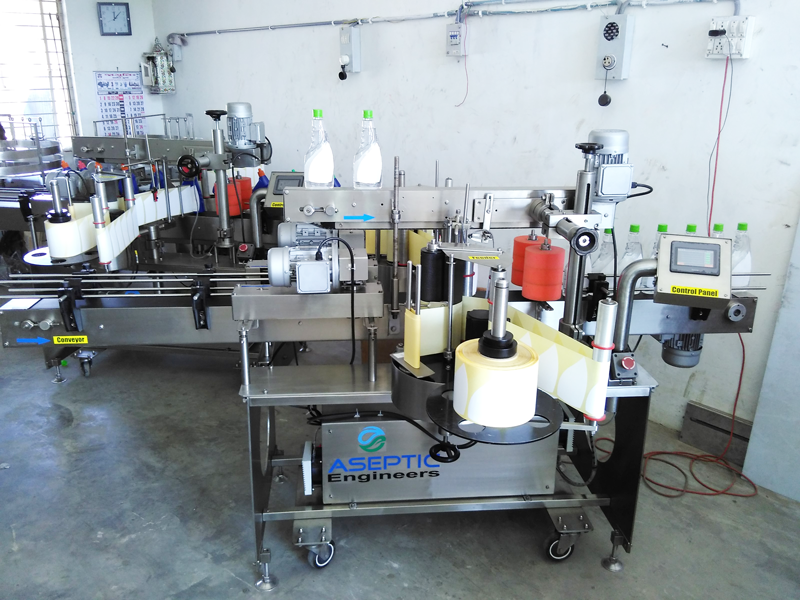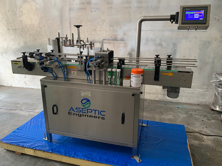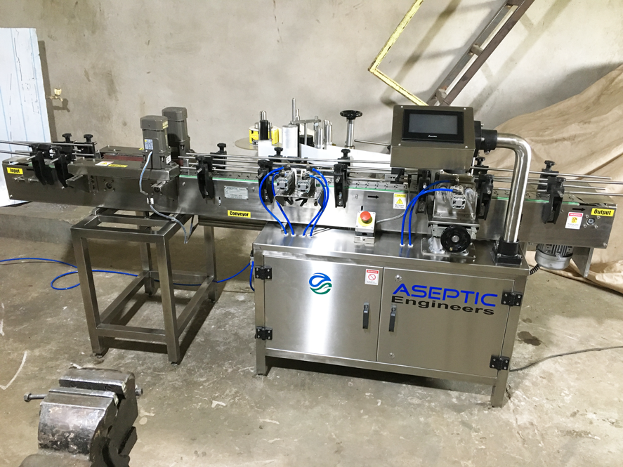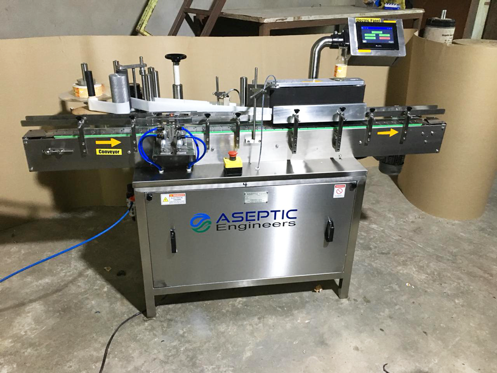 We at Aseptic Engineers are engaged in meeting various labelling and packaging needs of our clients with technically advanced and efficient machinery. Precision is vital while labelling bottles and containers and our machines are designed to apply labels and stickers at a high speed. This machine can handle containers of different shapes and sizes with no parts change required. It can effortlessly label 3600 to 6000 containers per hour.
