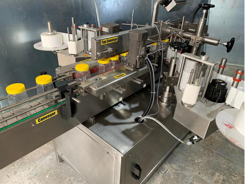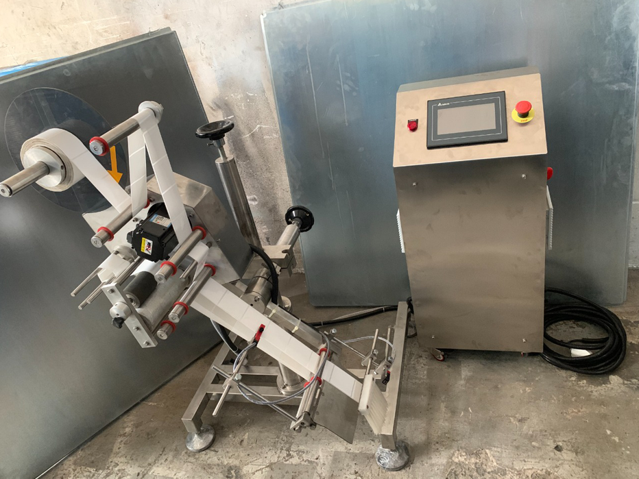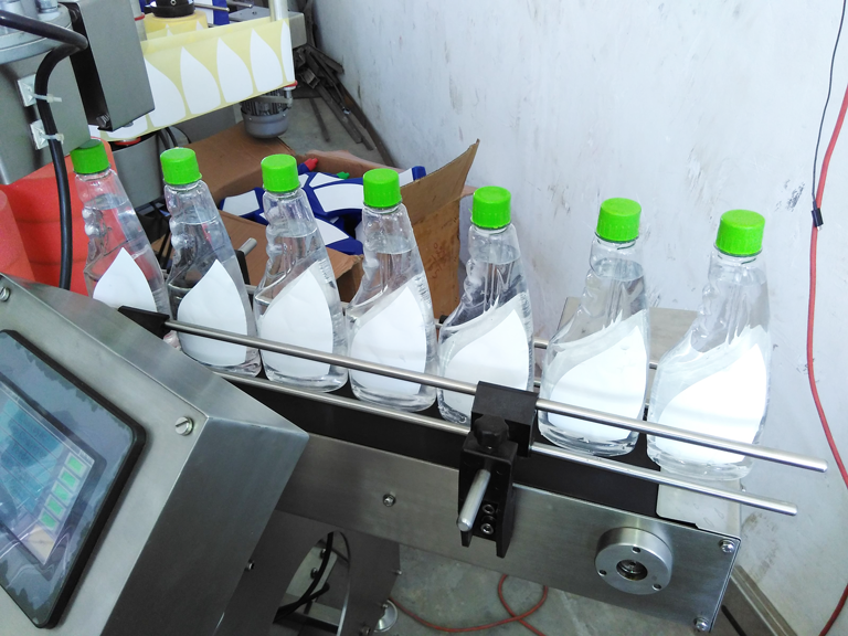 Sticker labelling machine operate 60-150 containers per minutes depending on products and label size. The automatic model is equipped with roller spacing device resulting in a simple to "No change parts required